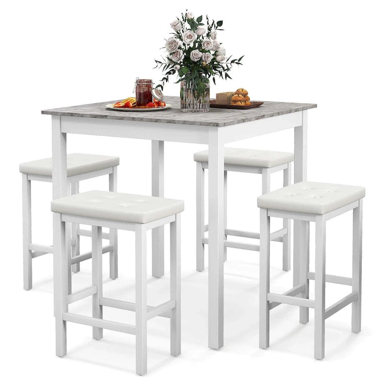 Costway 5 PCS Bar Table Set Square Dining Table & 4 PVC Leather